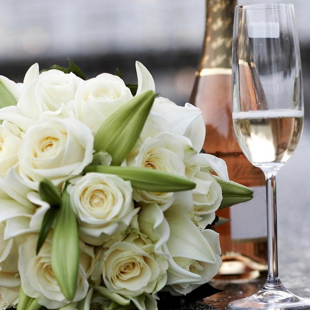 Wallpaper Champagne and a bouquet of roses for his beloved on March 8