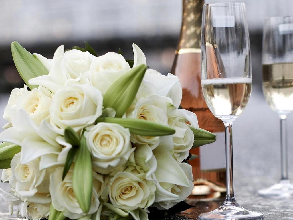 » Wallpaper White roses and champagne