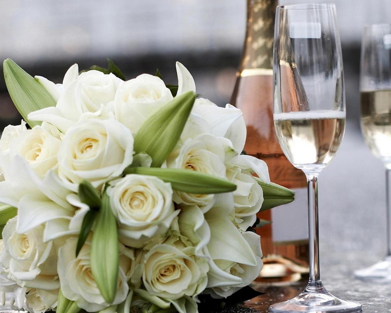 » Wallpaper White roses and champagne