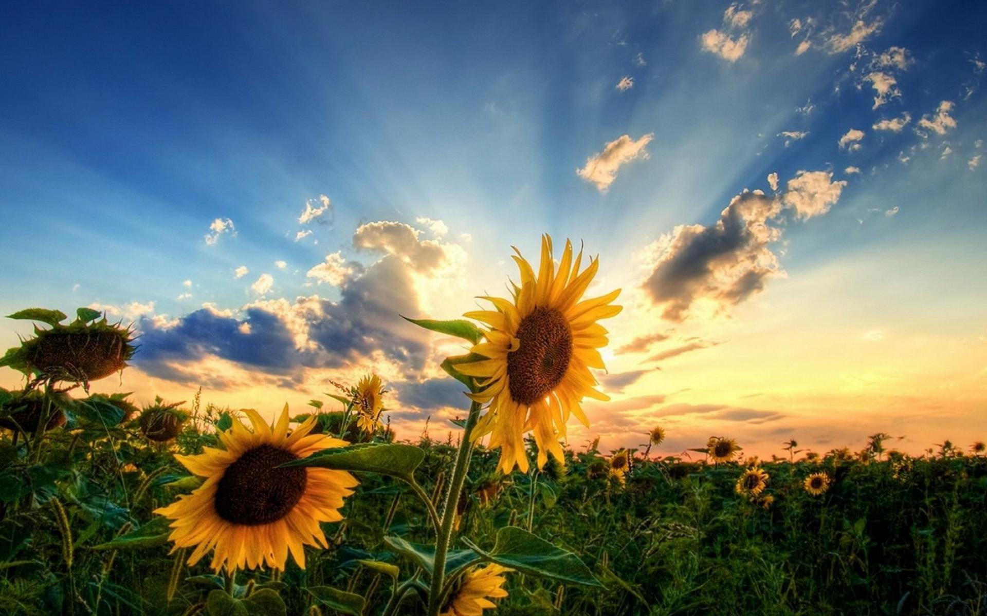 Wallpaper Two sunflowers on a green field