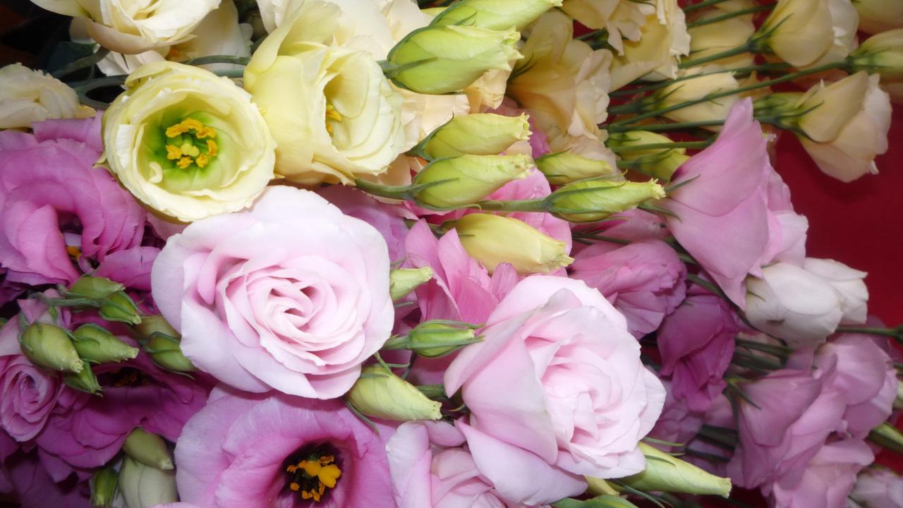 Wallpaper In the garden of beautiful flowers Eustoma (Irish Rose)