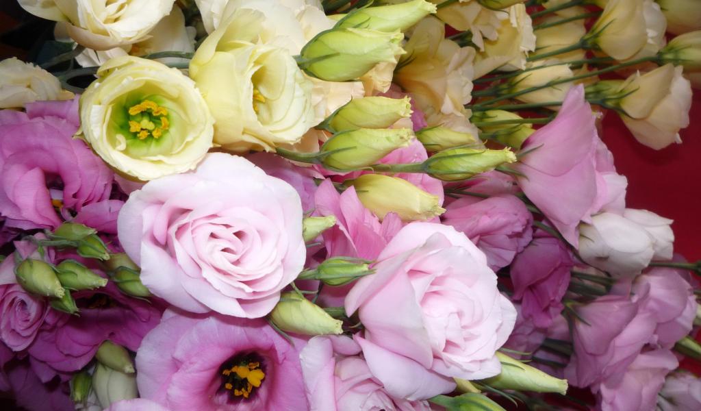 Wallpaper In the garden of beautiful flowers Eustoma (Irish Rose)