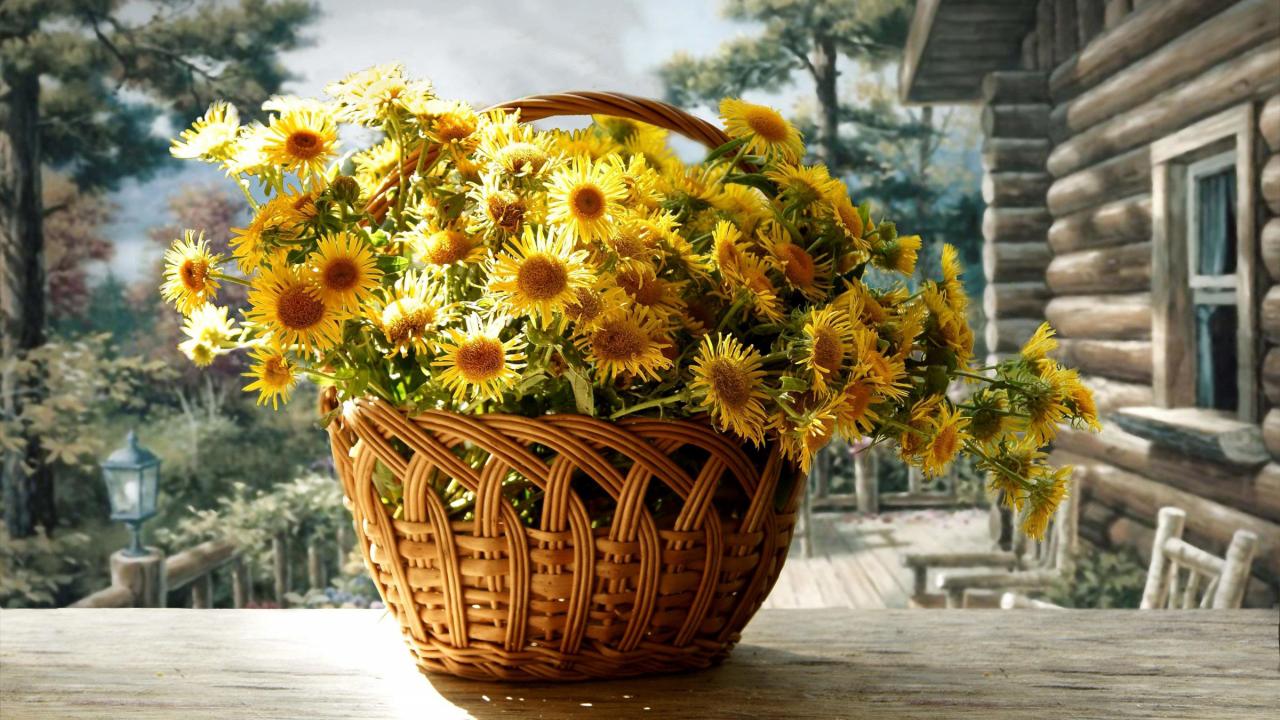 Wallpaper Beautiful flowers in a basket Chrysanthemum
