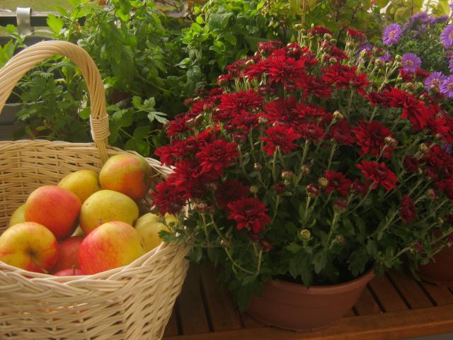 Wallpaper Beautiful flowers of chrysanthemums and apples