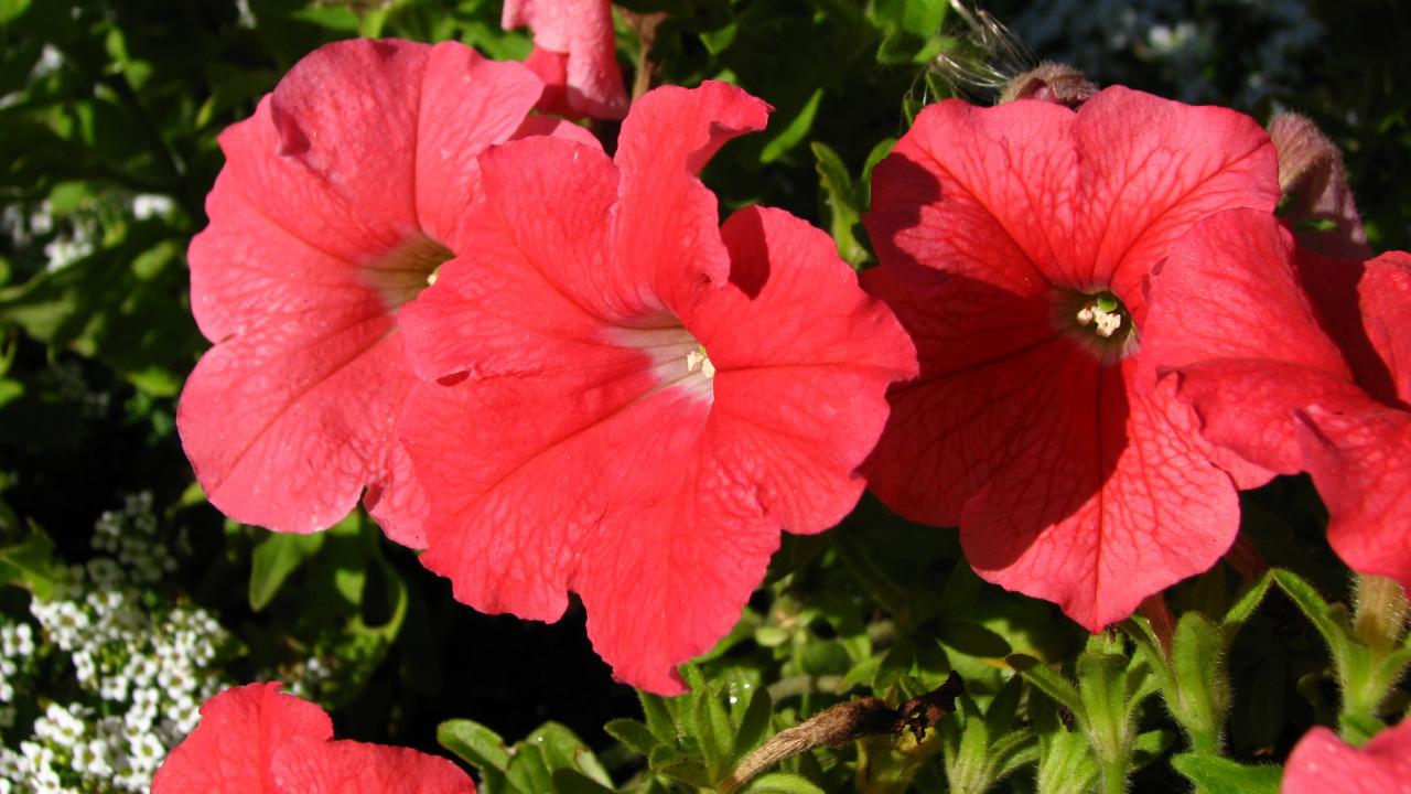 Wallpaper Beautiful flowers of petunia in the flowerbed in the garden