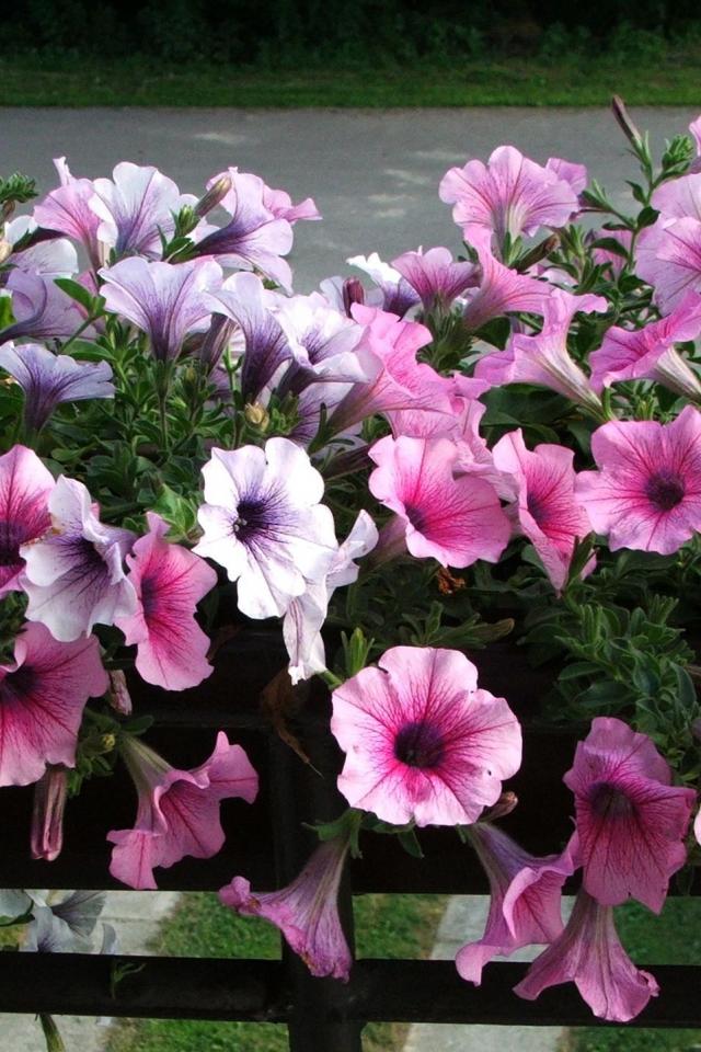 Wallpaper Beautiful flowers of petunia in the flowerbed in the garden