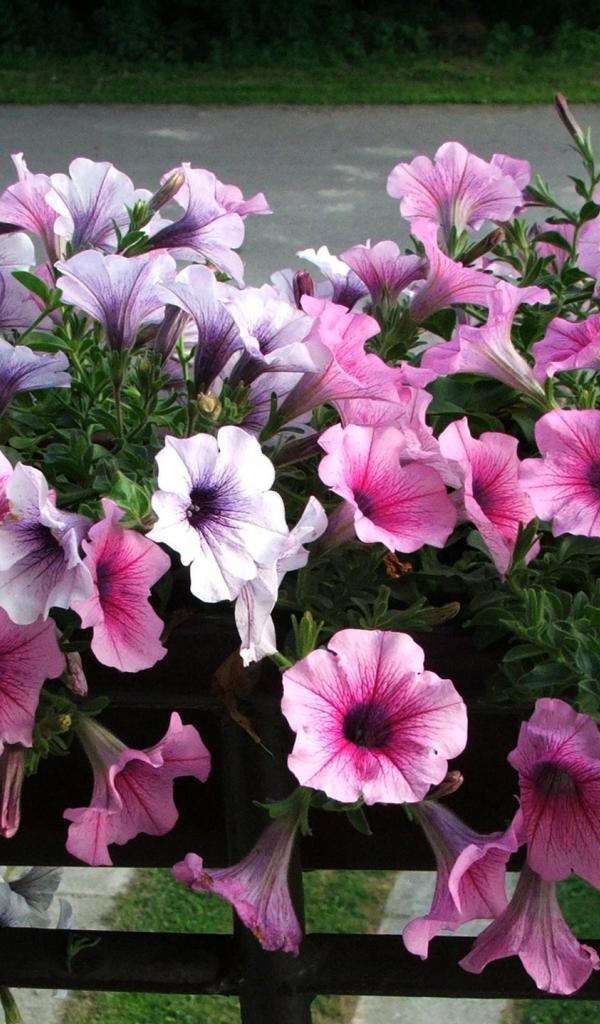 Wallpaper Beautiful flowers of petunia in the flowerbed in the garden