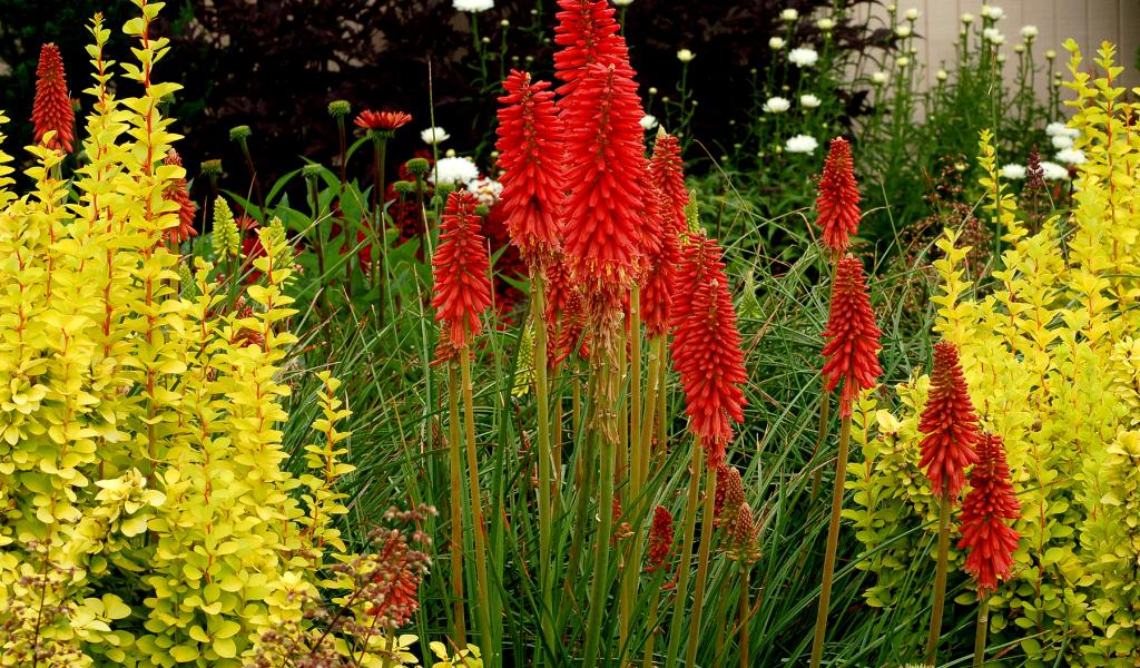 Wallpaper Flowers growing in the garden knikofiya