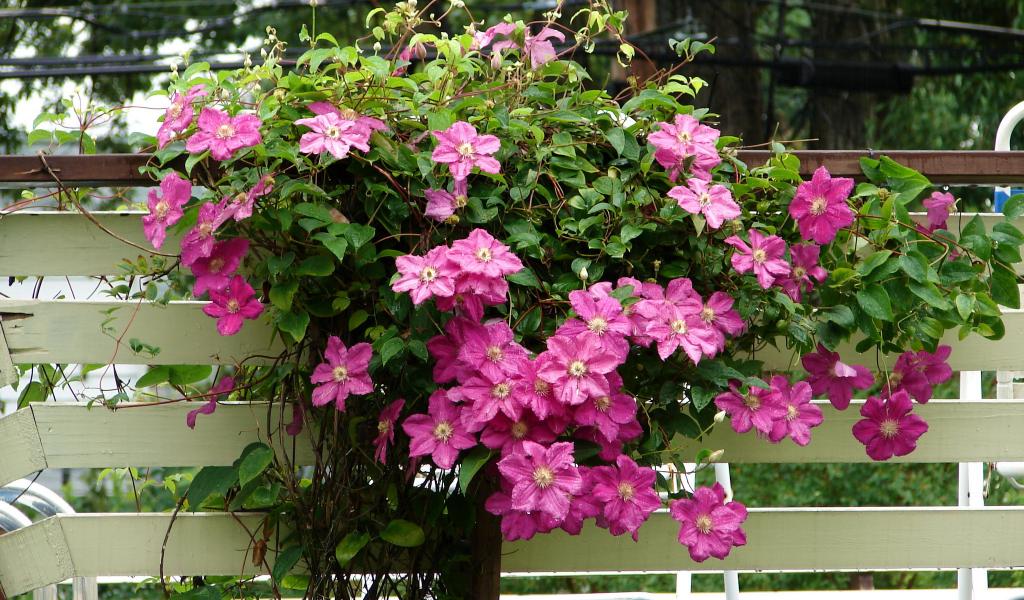 Wallpaper Beautiful flowers of clematis on a bed in the garden