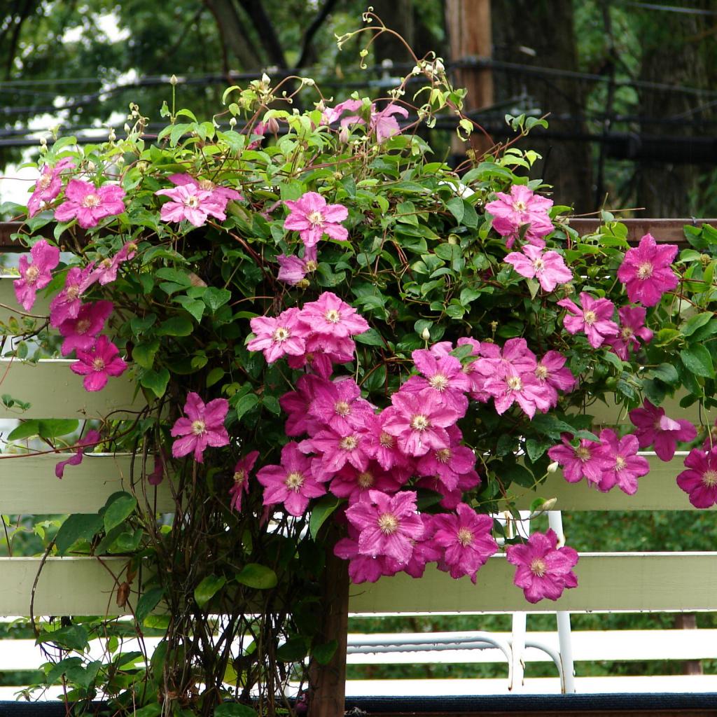 Wallpaper Beautiful flowers of clematis on a bed in the garden