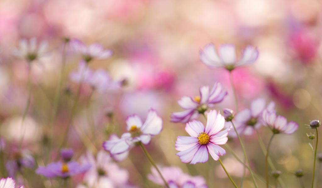 Wallpaper Beautiful Cosmos flowers in the flower bed in the garden