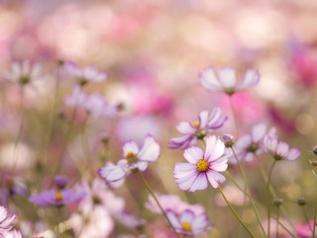 Wallpaper Beautiful Cosmos flowers in the flower bed in the garden