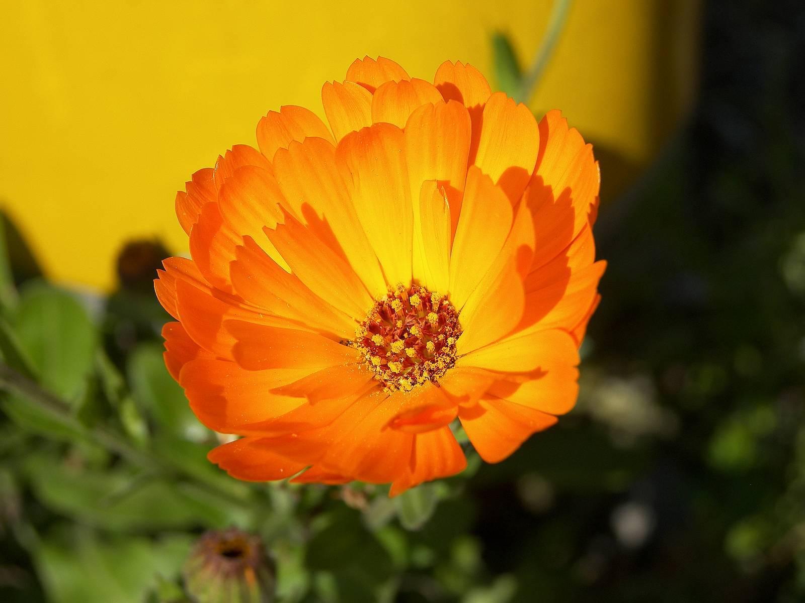Wallpaper Beautiful flowers of calendula in a flowerbed in the garden