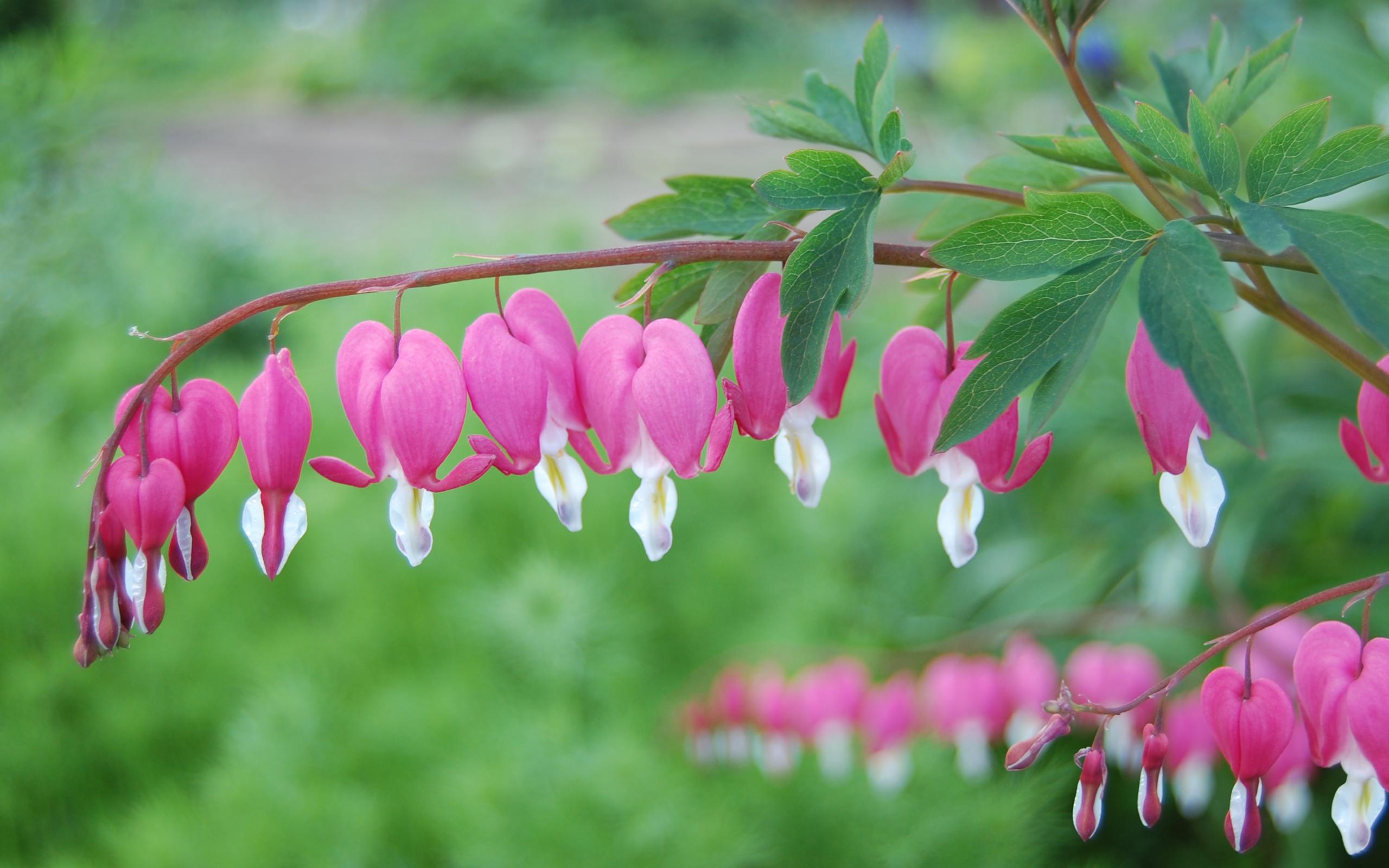 Wallpaper Beautiful bleeding heart flowers in the flower bed in the garden