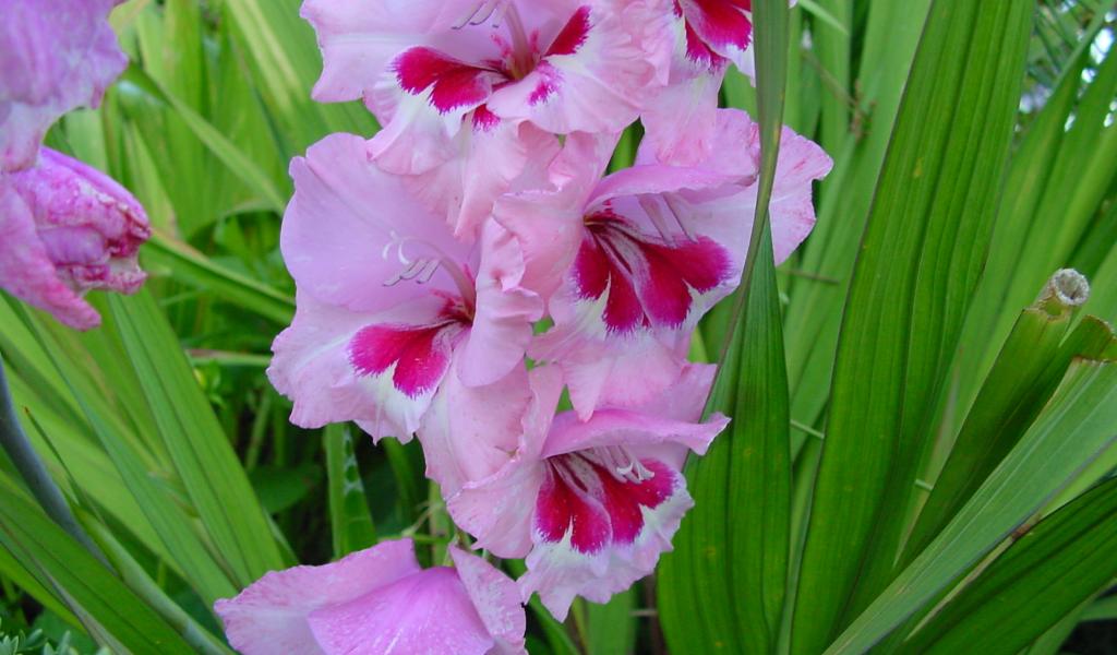 Wallpaper Beautiful gladiolus flowers in the flower bed in the garden