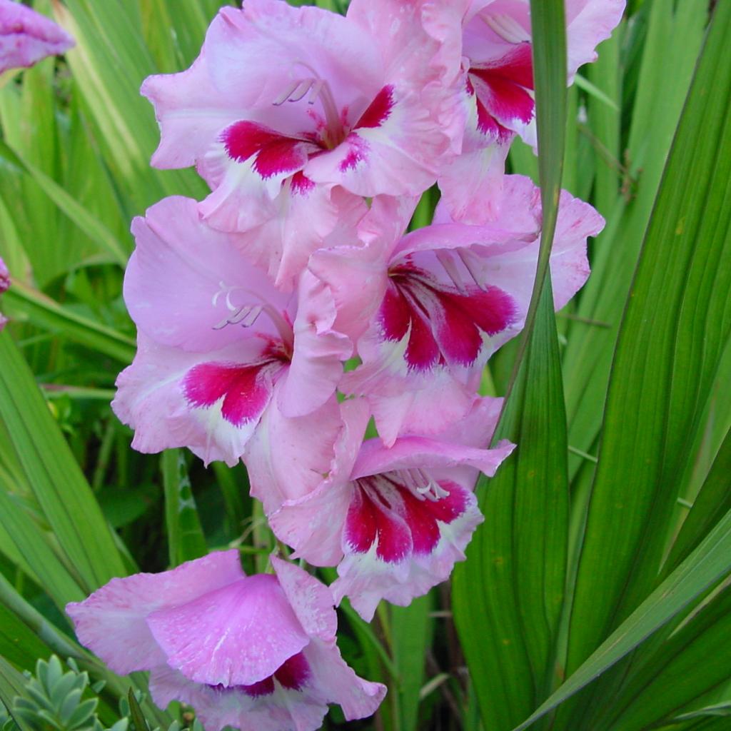 Wallpaper Beautiful gladiolus flowers in the flower bed in the garden