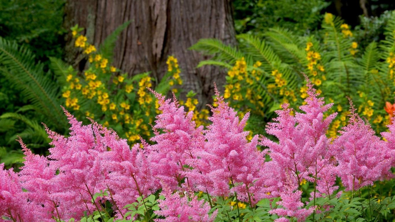 Wallpaper Beautiful flowers Astilbe in the flowerbed in the garden