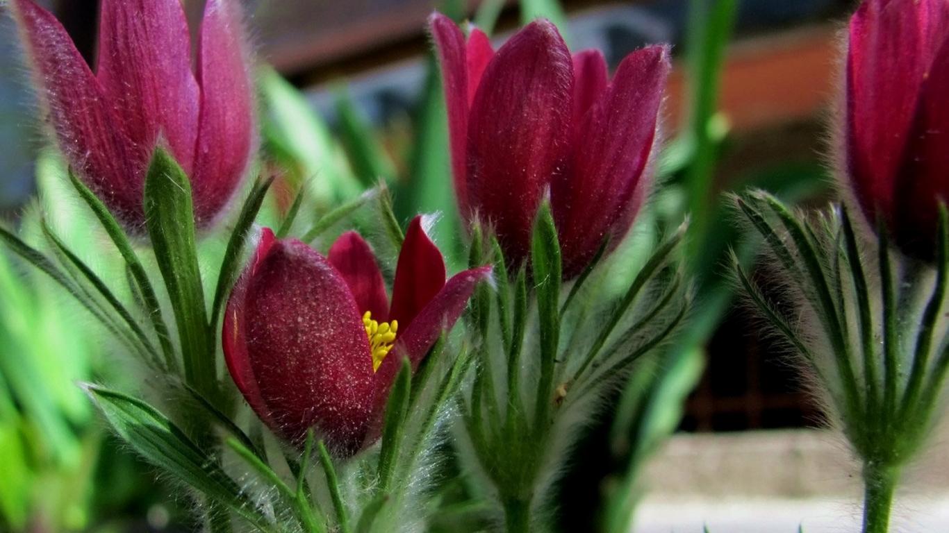 Wallpaper Beautiful flowers of anemone on a bed in the garden