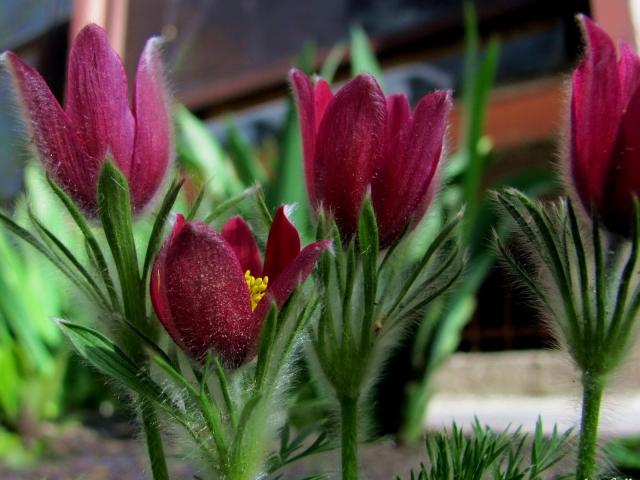 Wallpaper Beautiful flowers of anemone on a bed in the garden