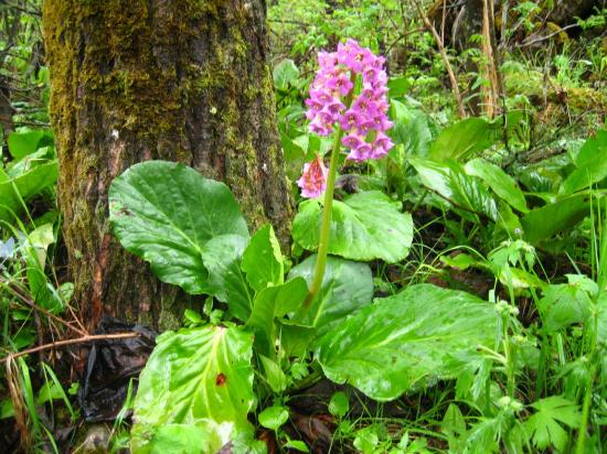 Wallpaper Bergenia beautiful perennial flowers in the forest