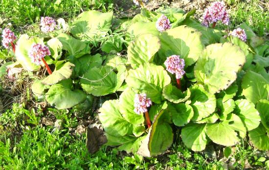 Wallpaper Bergenia beautiful perennial flowers in the forest