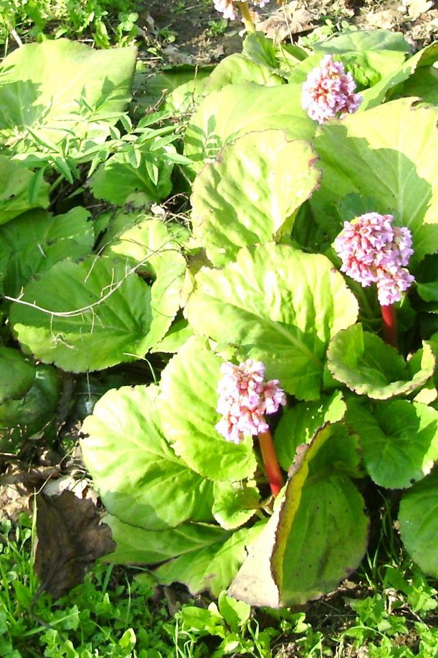 Wallpaper Perennial plant Bergenia in the sun