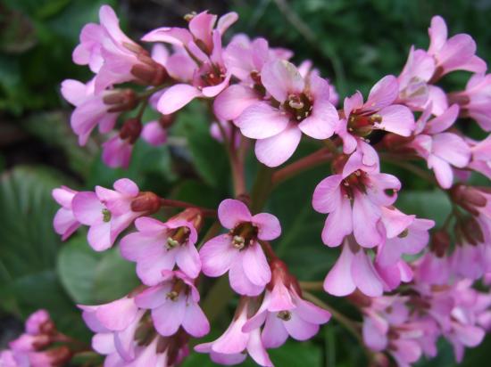 Wallpaper Bergenia beautiful perennial flowers in the forest