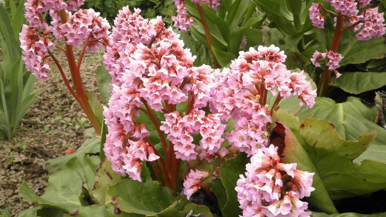 Wallpaper Bergenia beautiful perennial flowers in the forest