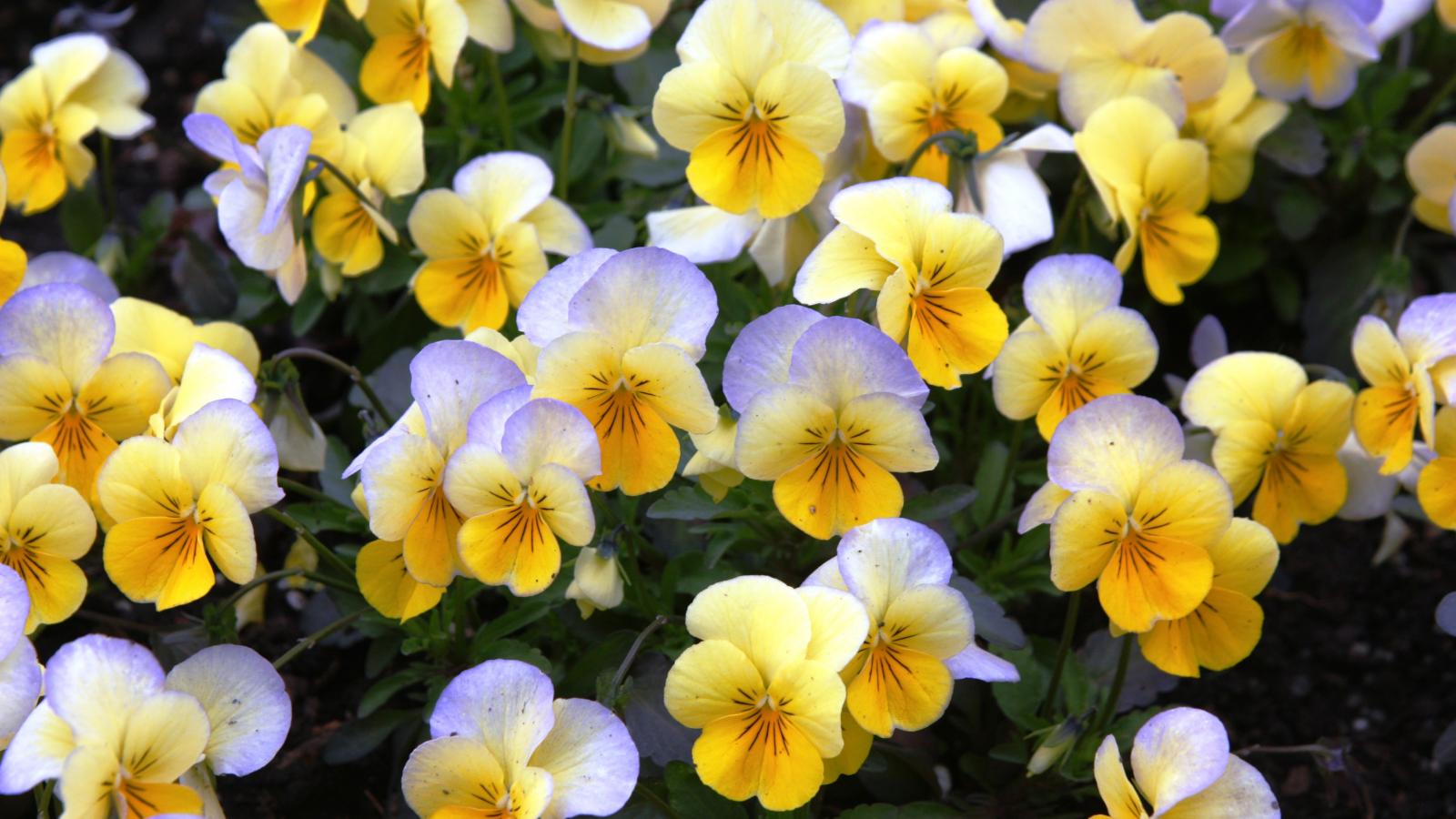 Wallpaper Beautiful spring yellow viola in the garden