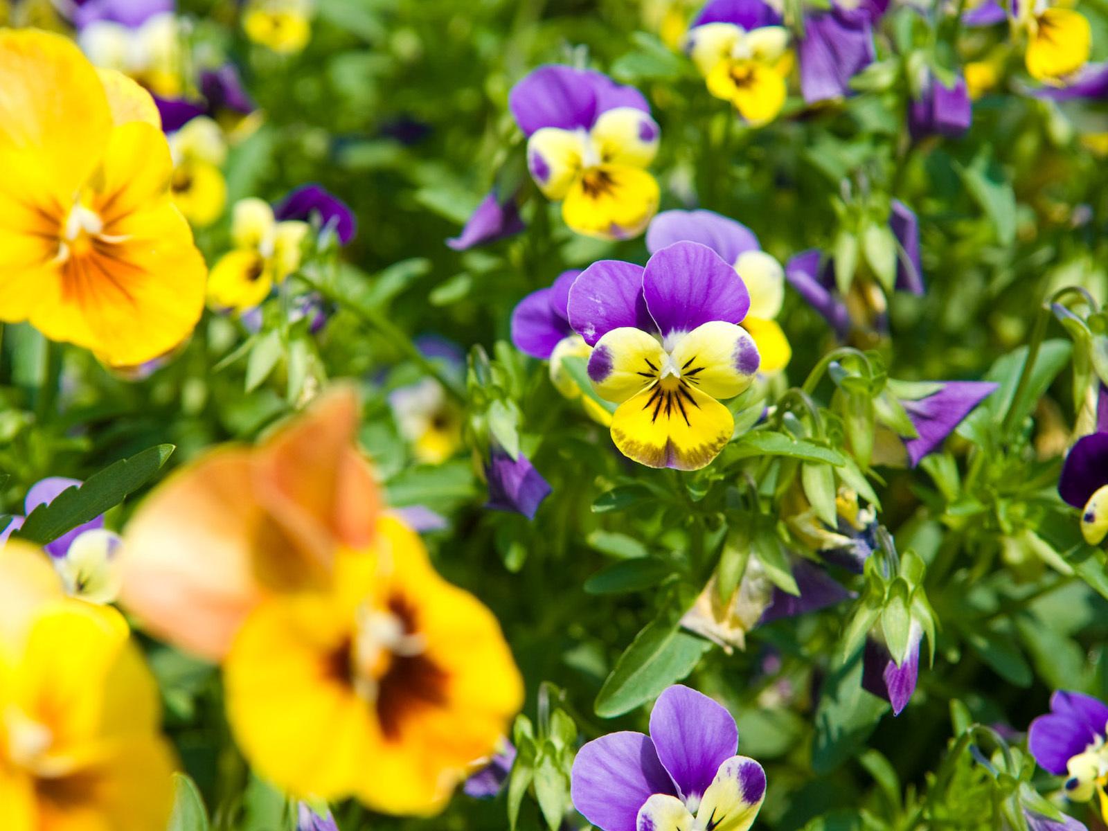 Wallpaper Beautiful spring Viola (violets, pansies) in the park
