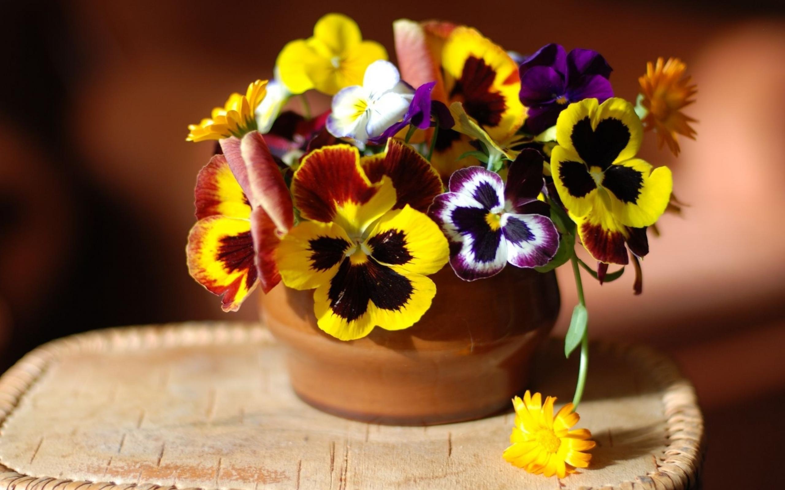 Wallpaper Viola flowers (violet, pansy) home on the table