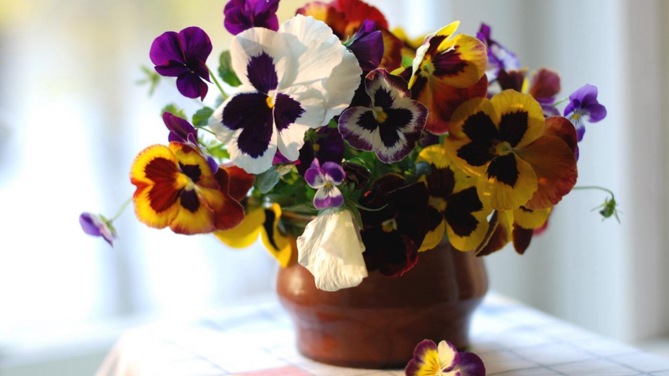 Wallpaper Viola flowers (violets, pansies) in pot
