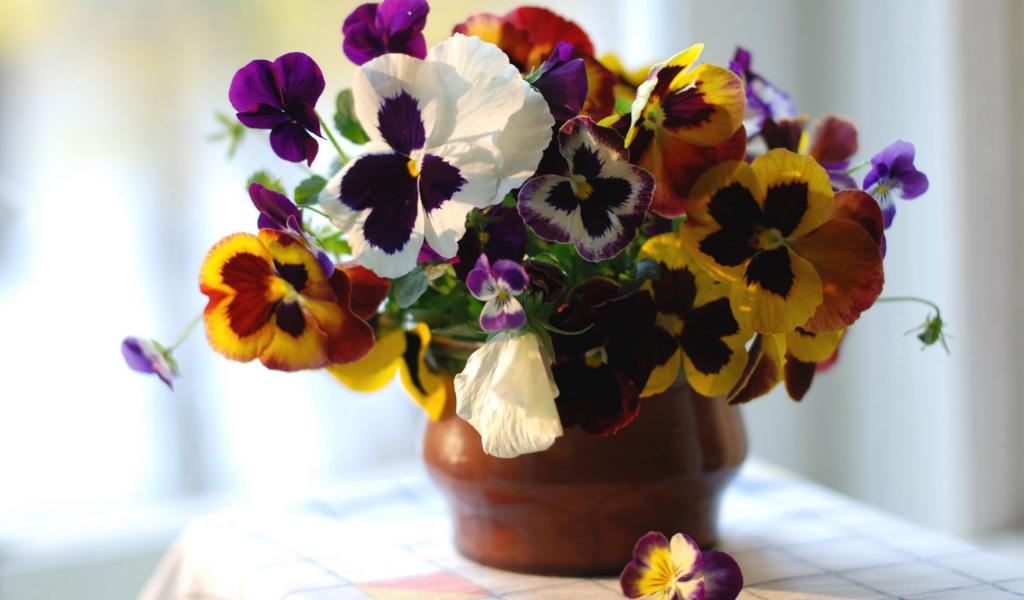 Wallpaper Viola flowers (violets, pansies) in pot