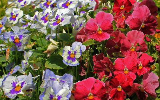 Wallpaper Beautiful flowers viola (violet, pansy) in the forest