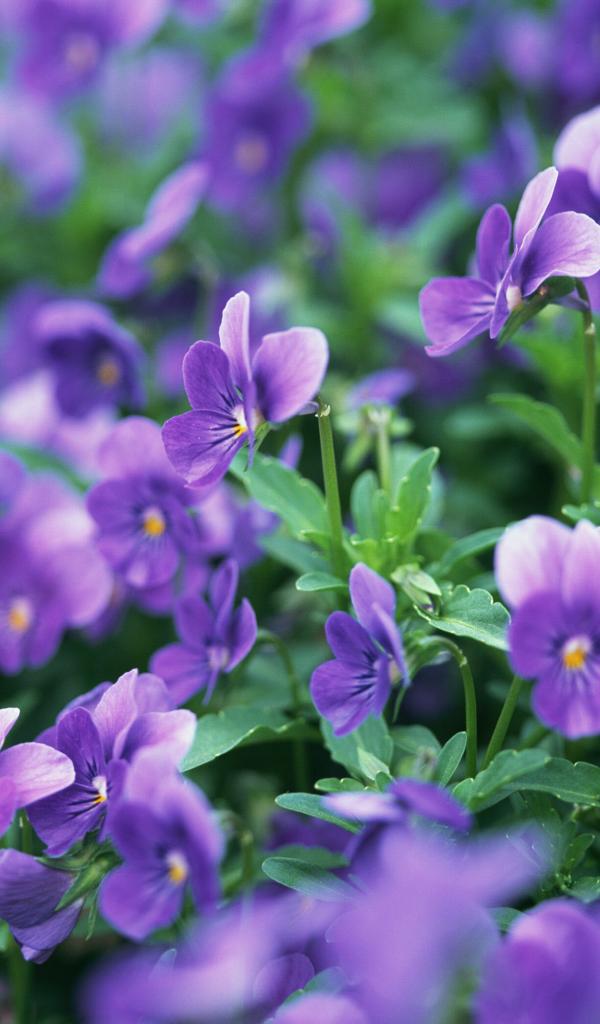 Wallpaper Beautiful flowers viola (violet, pansy) in the forest