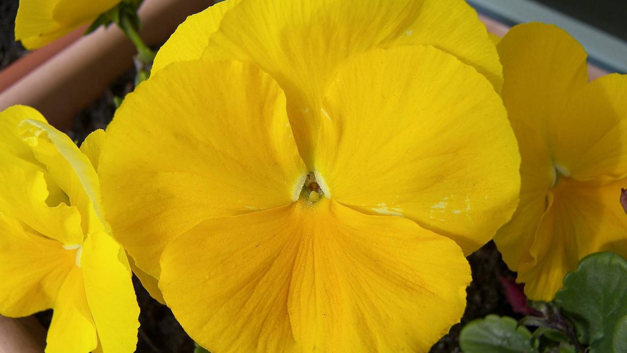 Wallpaper Yellow beautiful flower in a pot of pansies