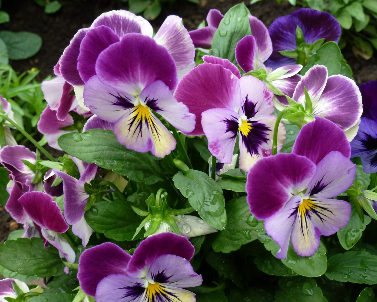 Wallpaper Beautiful flowers viola (violet, pansy) on glade