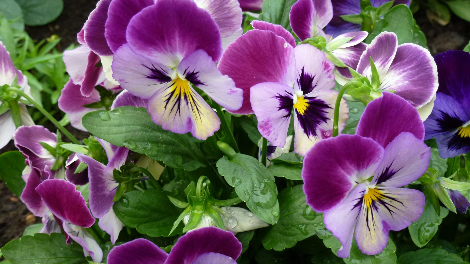 Wallpaper Pansy flowers in bloom