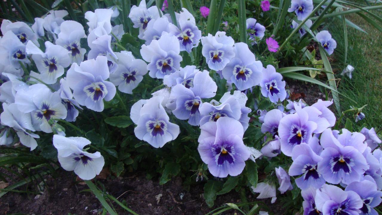 Wallpaper Pansy flowers in a garden