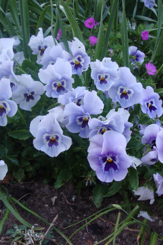 Wallpaper Beautiful flowers viola (violet, pansy) in the forest