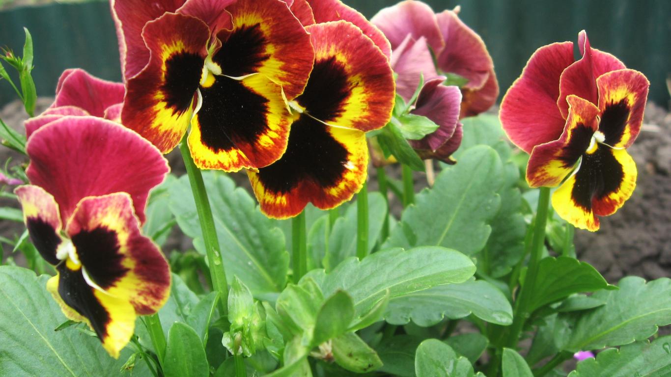 Wallpaper Beautiful flowers viola (violet, pansy) in the garden