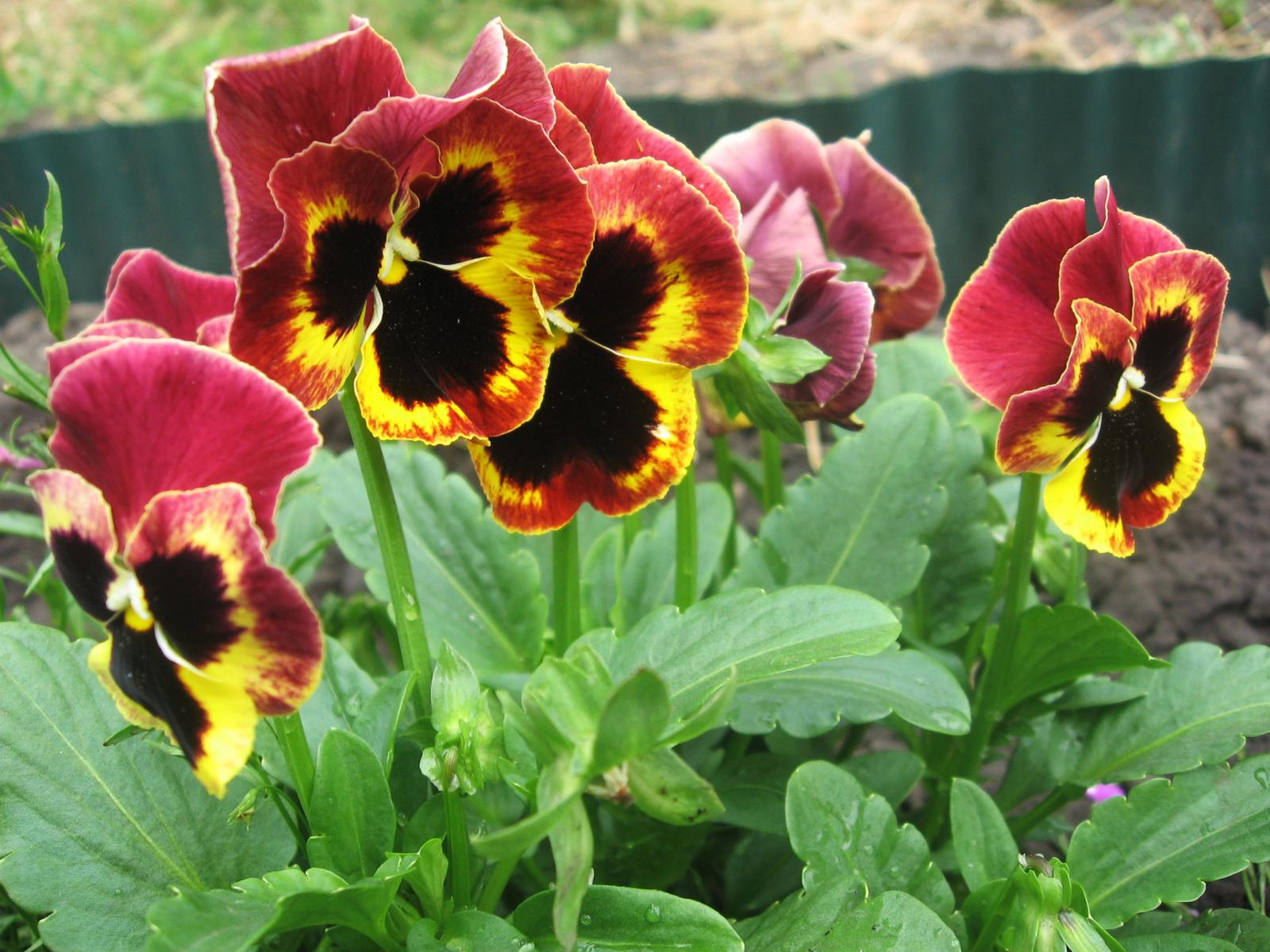 Wallpaper Beautiful red pansy flowers