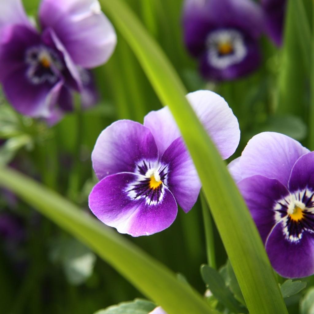 Wallpaper Purple pansy flowers in a garden in spring