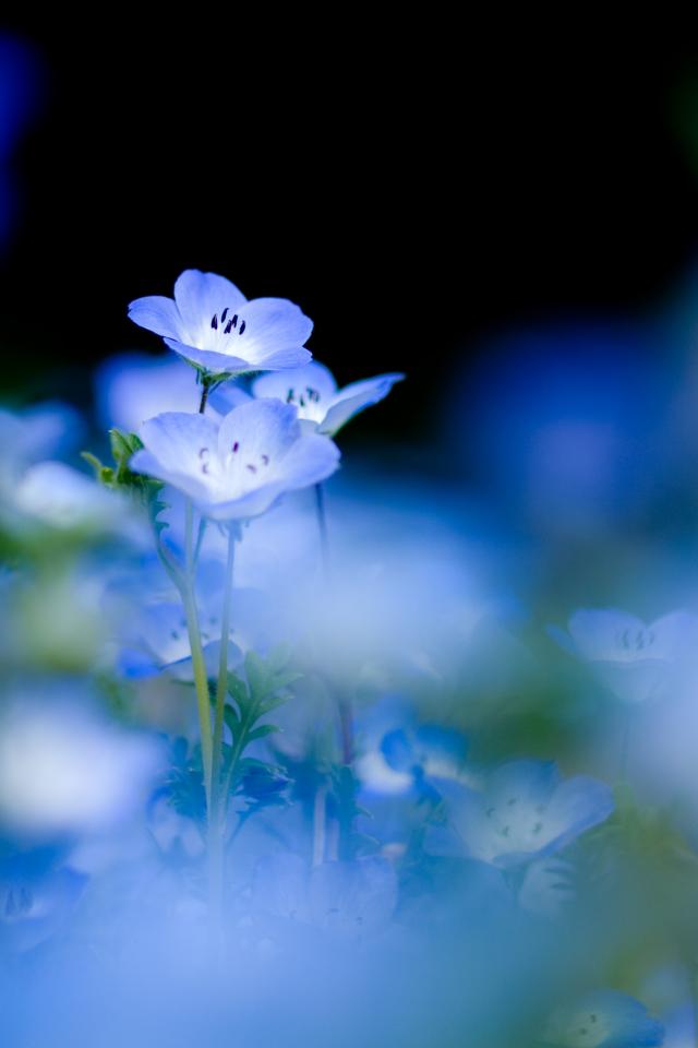 Wallpaper Blue pansy flowers in a garden in spring