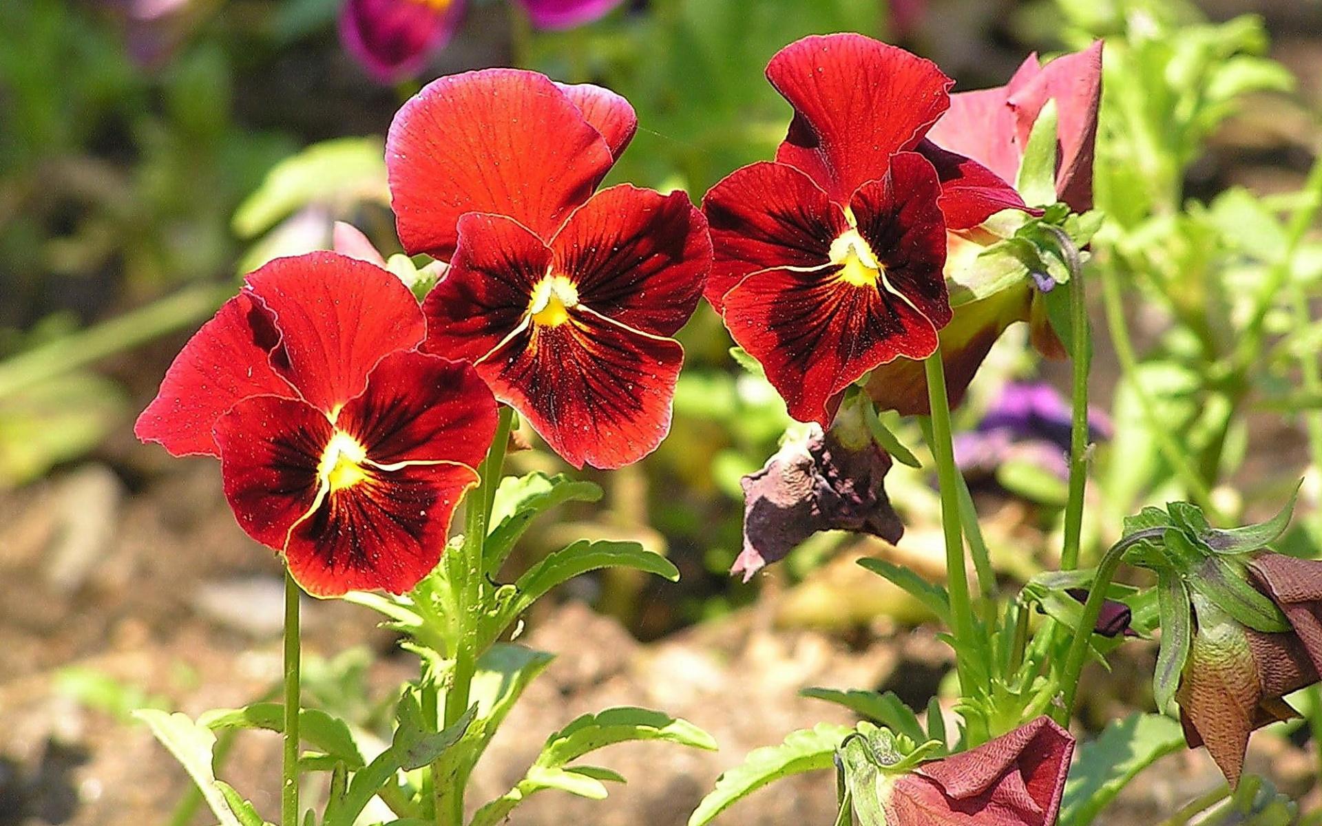 Wallpaper Beautiful red pansy flowers
