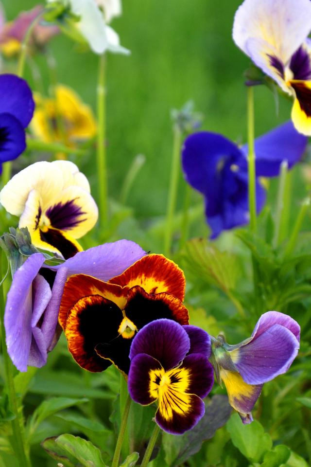 Wallpaper Beautiful spring flowers pansies in a clearing