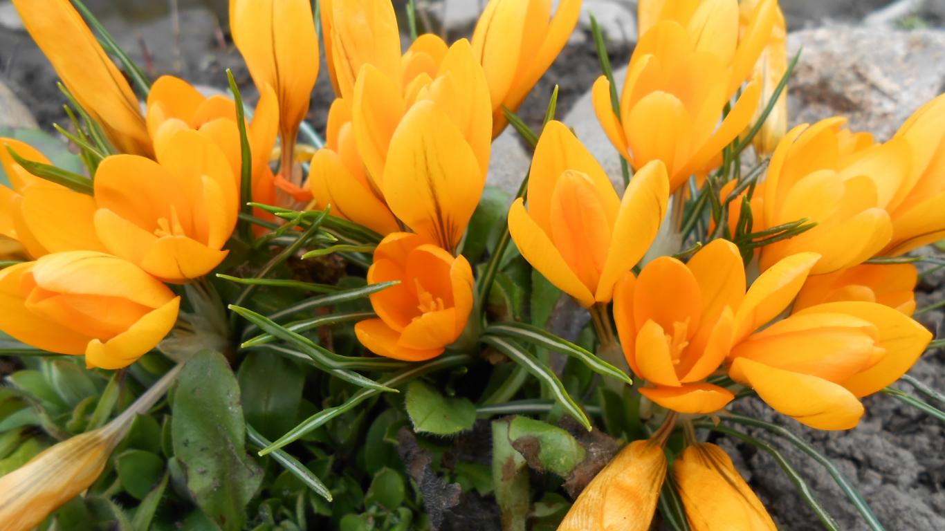 Wallpaper Yellow crocus flowers on the glade