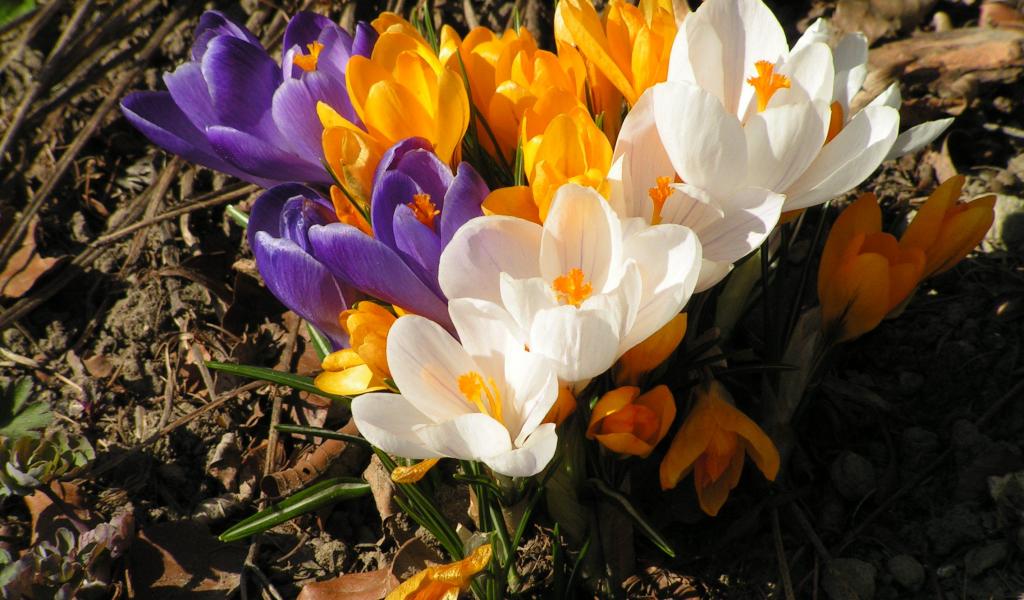 Wallpaper In a clearing spring flowers crocus