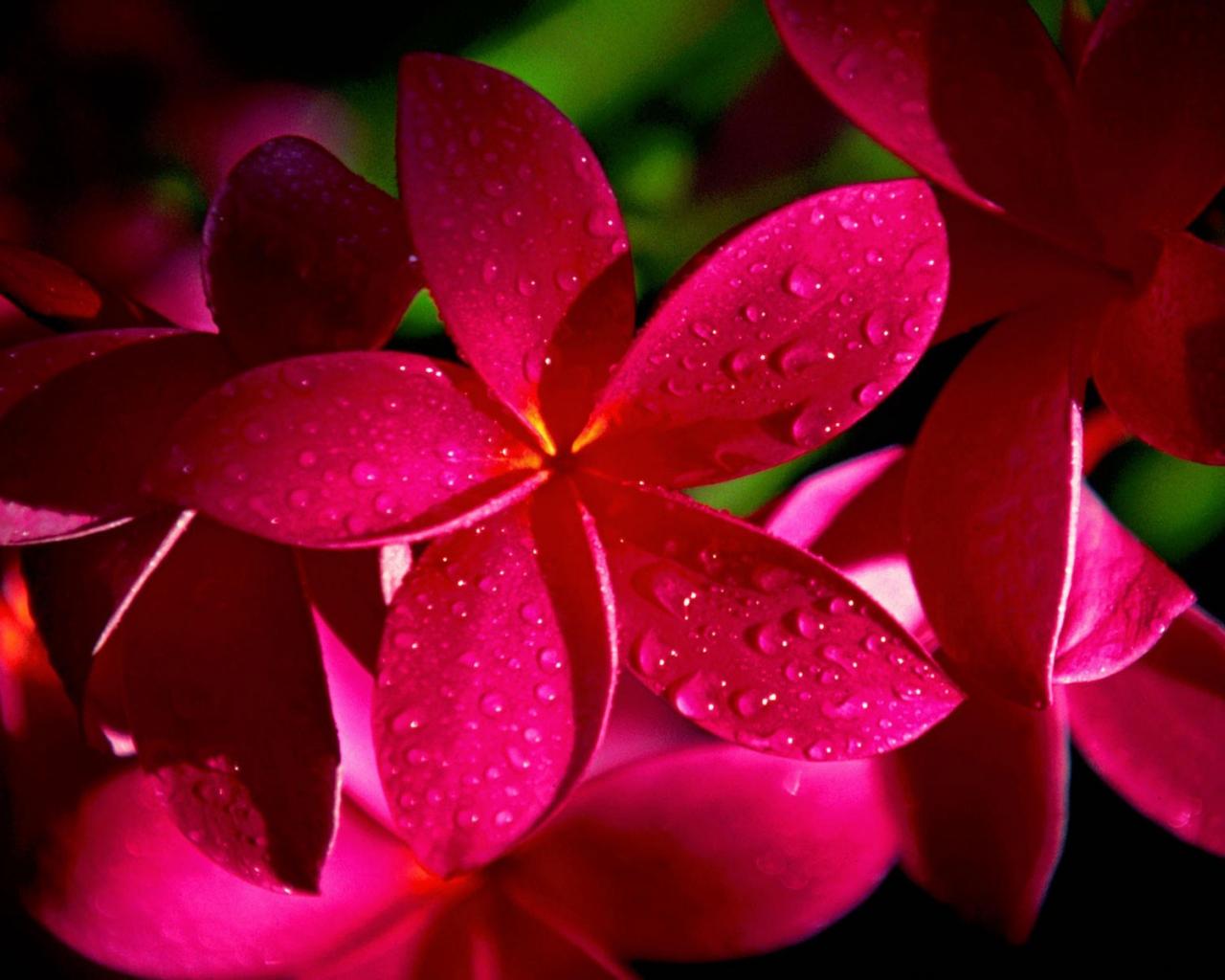 Wallpaper Red flowers with morning dew