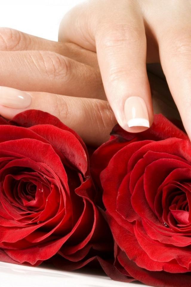 Wallpaper Red roses and female hands